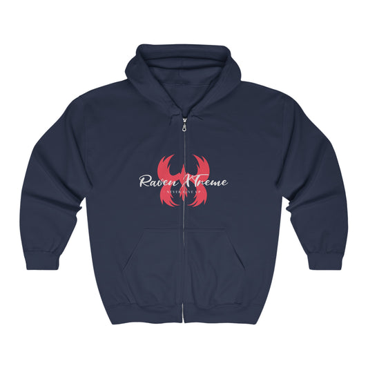 Raven XTreme Red and White Unisex Heavy Blend Full Zip Hooded Sweatshirt