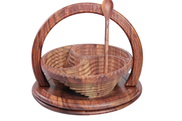 Made with high-quality rosewood, this collapsible basket measures 12 inches in diameter, making it the ideal choice for presenting a variety of delicious dry fruits on your dining table. The exquisite craftsmanship and attention to detail ensure that this basket is not only practical but also an exquisite piece of art.