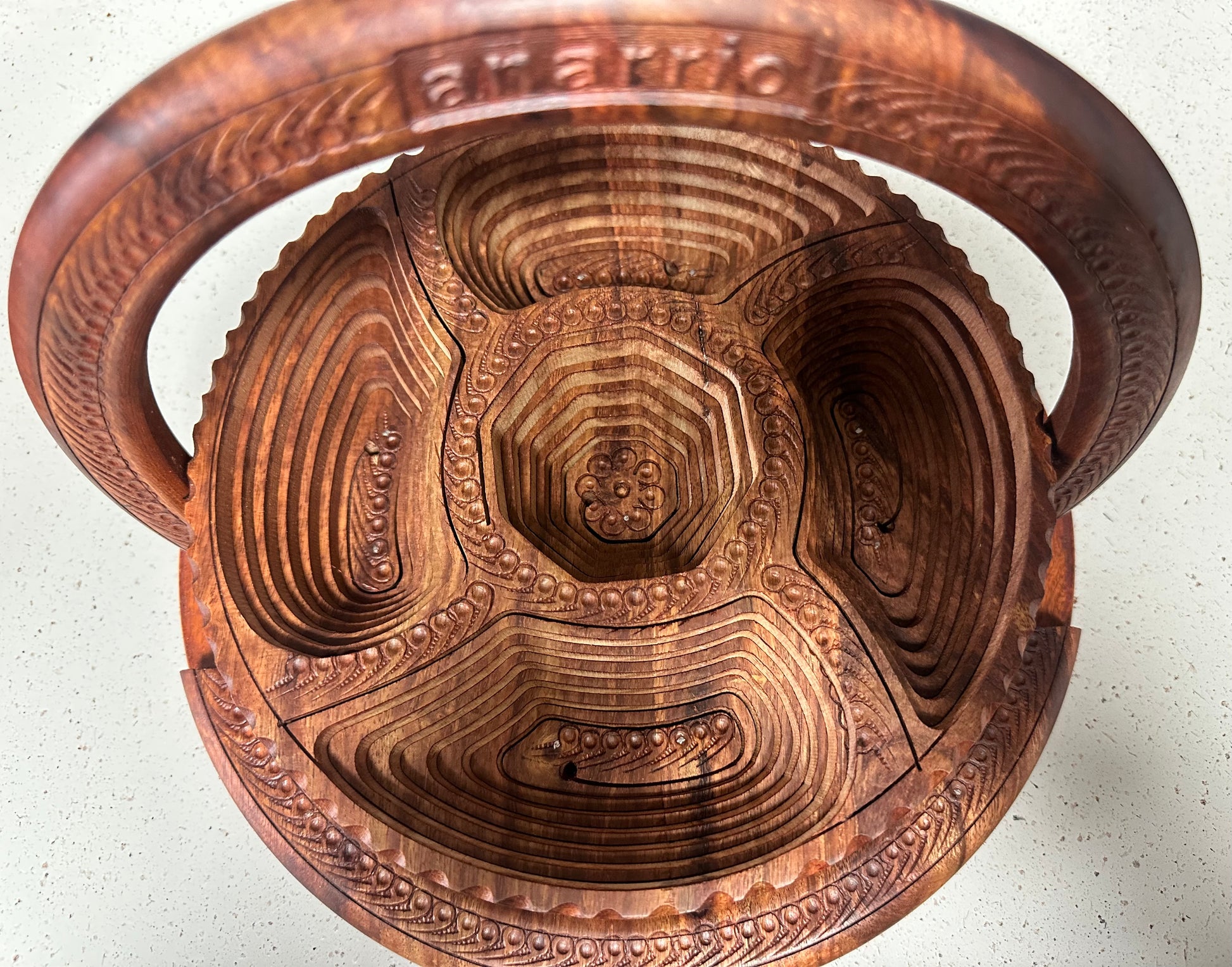 Made with high-quality rosewood, this collapsible basket measures 12 inches in diameter, making it the ideal choice for presenting a variety of delicious dry fruits on your dining table. The exquisite craftsmanship and attention to detail ensure that this basket is not only practical but also an exquisite piece of art.