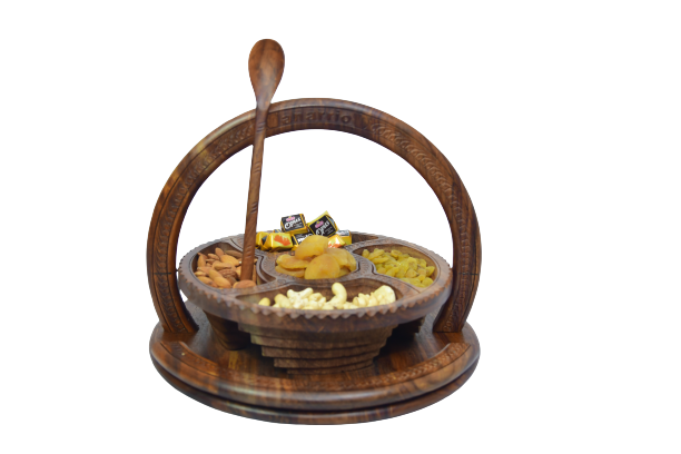 The Anarrio Wooden Basket offers versatility with its unique design. It comes with either 3 or 5 partitions, allowing you to organize your dry fruits in an aesthetically pleasing manner. Whether you're serving at a special occasion or simply enjoying a snack, this basket provides a stable and elegant platform for your dry fruits.